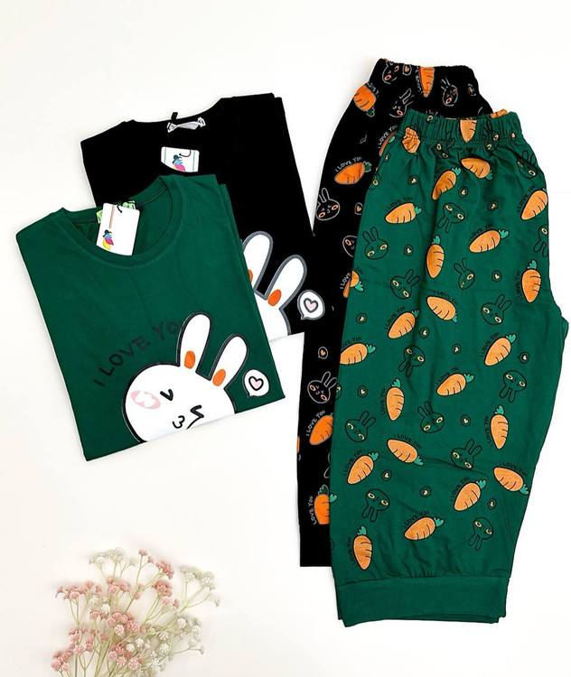 ست تیشرت وشلوارک برمودا خرگوش وهویج