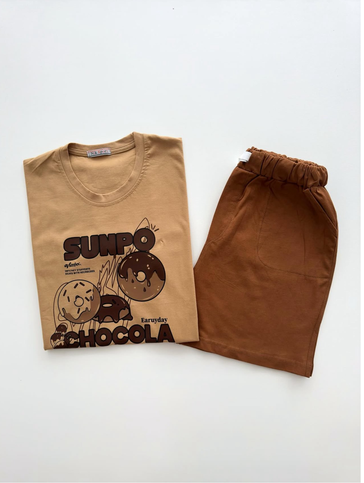 ست تیشرت وشورتک دونات شکلاتی