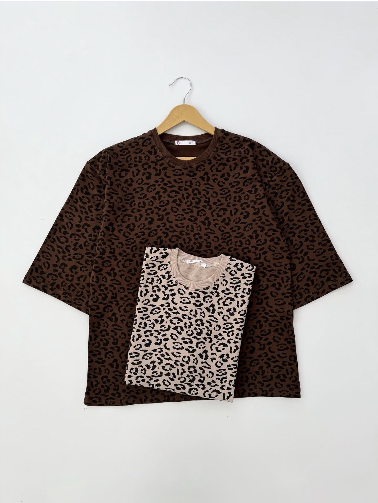 ست تیشرت لانگ وشلواربگ قلبی پلنگی